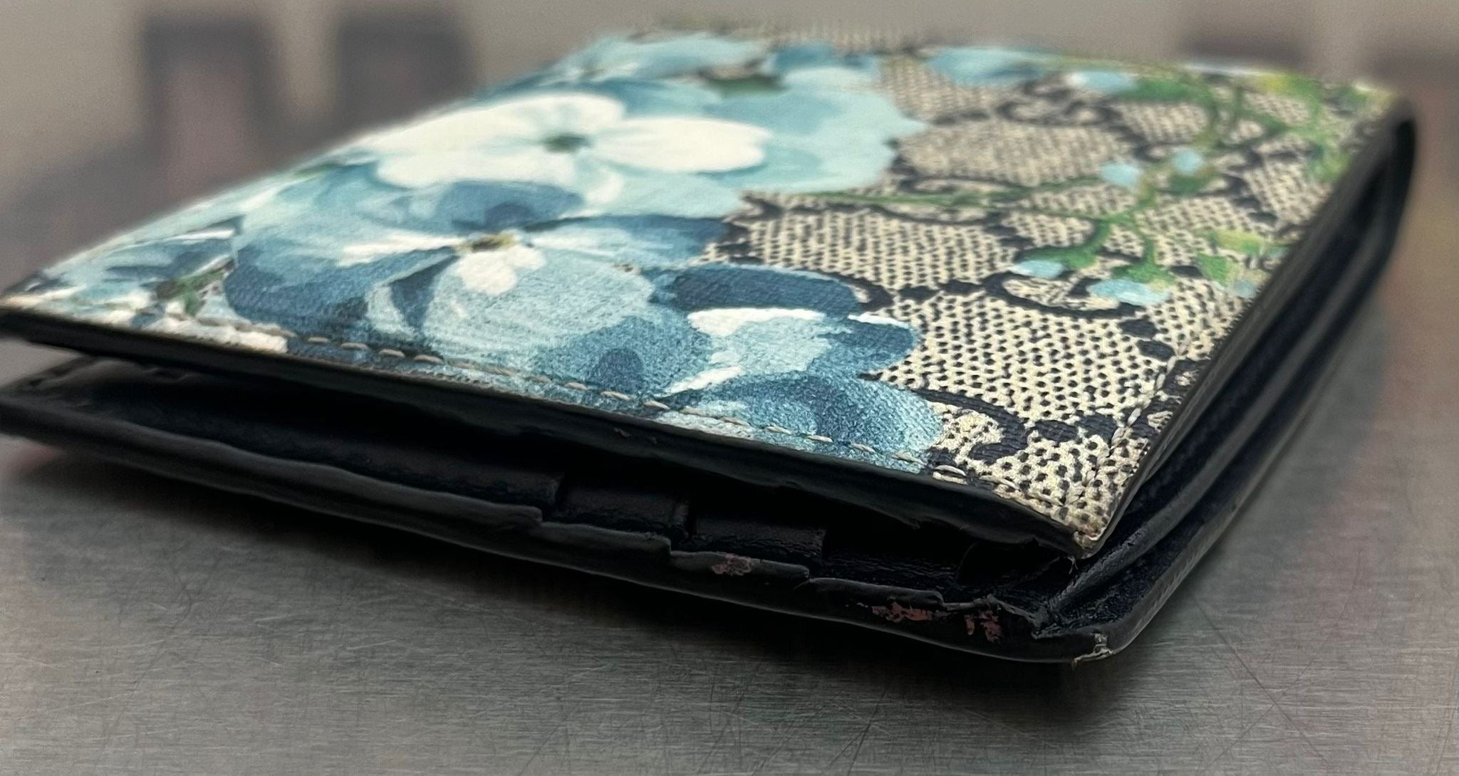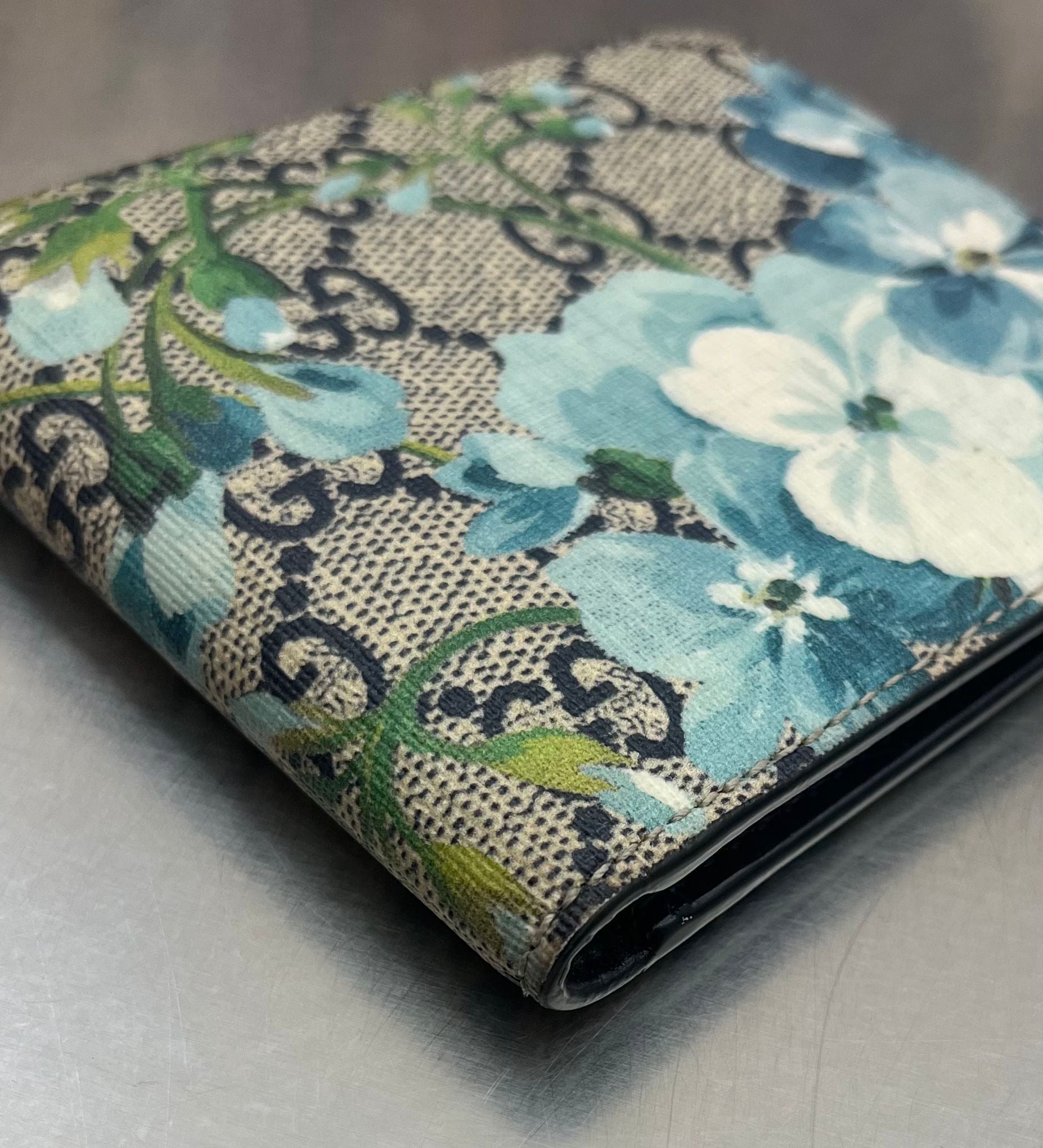 Farbe: Beige GG Canvas mit blauweißen Blumen