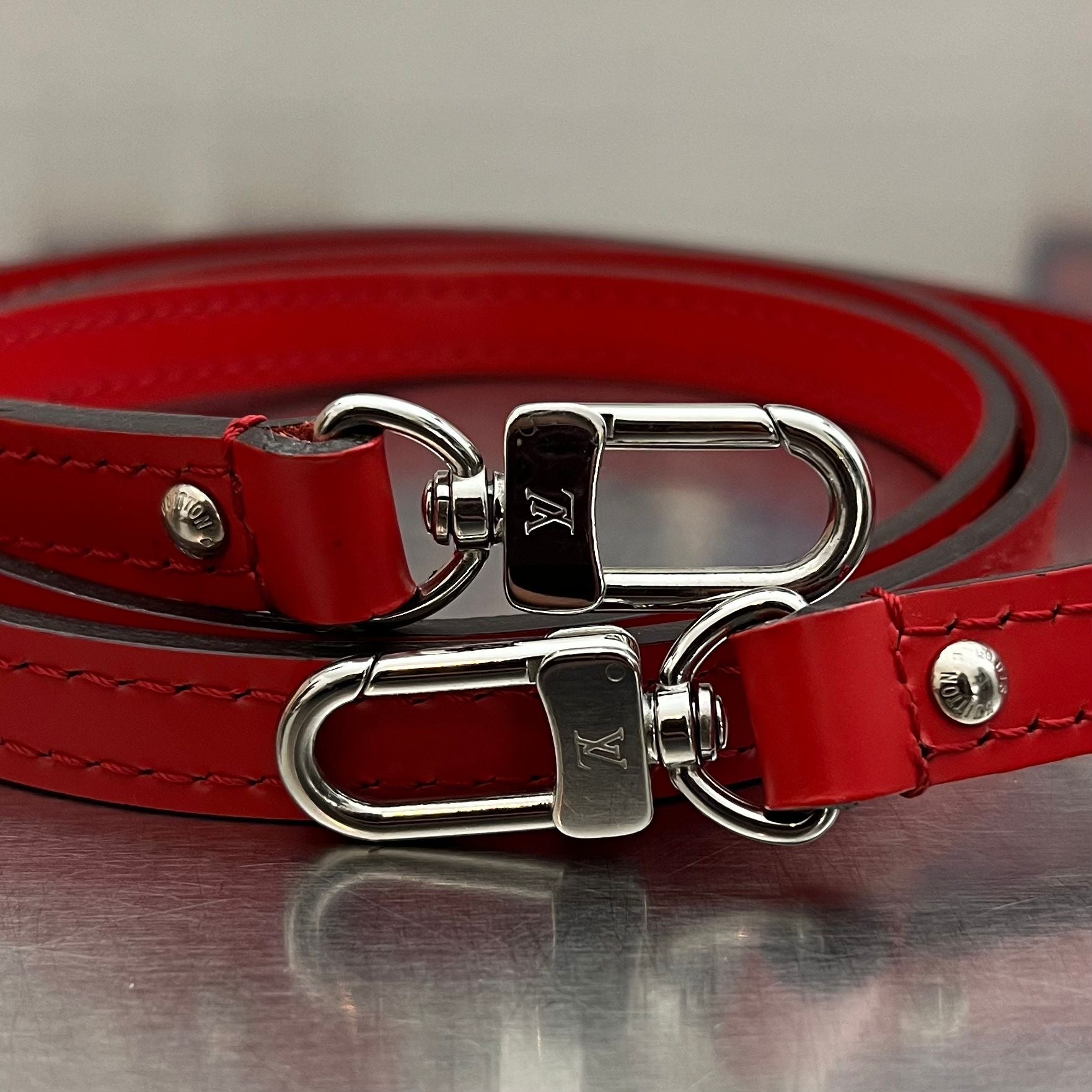 Farbe: Rot mit silberfarbener Hardware